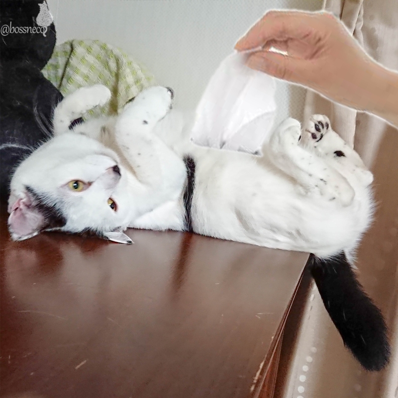 ティッシュを引っ張るとさらにキュンとなって喜びますฅ🐼ฅ