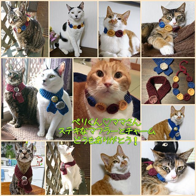 うちの子みんなのマフラーを編んでくださいました🎗🎀💞🙌