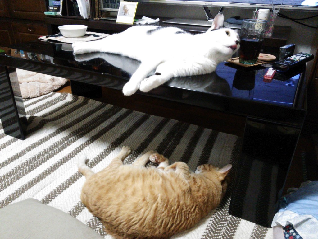 20140910190558coco は、たまに上から lanちゃんを脅かします。