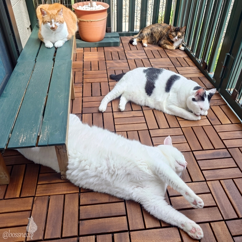 北風吹いて一瞬パラパラと雨降ったけど すぐに上がって気温が急降下⤵ さっそくベランダに出たい子たち #Blueskyねこ部 #CatsofBlueSky #CatsofBSky #catsky #catlovers #世界猫の日 #世界ネコの日 #InternationalCatDay #WorldCatDay — from Bluesky 2025-08-08