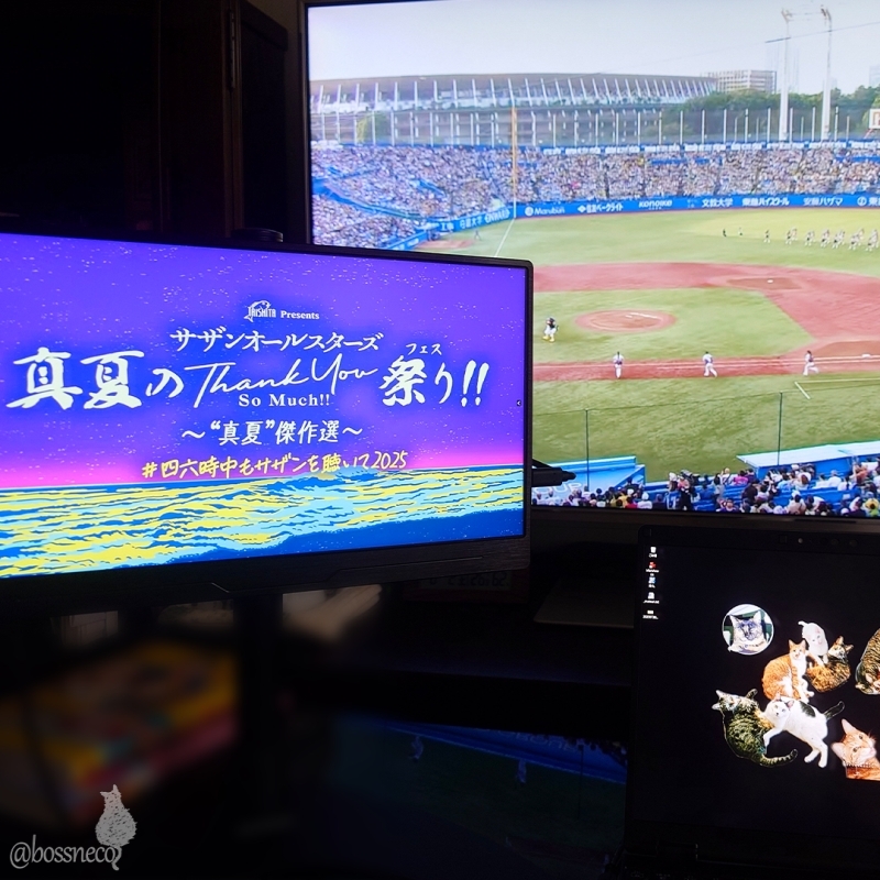 お楽しみタイム♡ TVとPCモニタの二刀流 #Blueskyねこ部 #CatsofBlueSky #CatsofBSky #catsky #catlovers — from Bluesky 2025-08-02