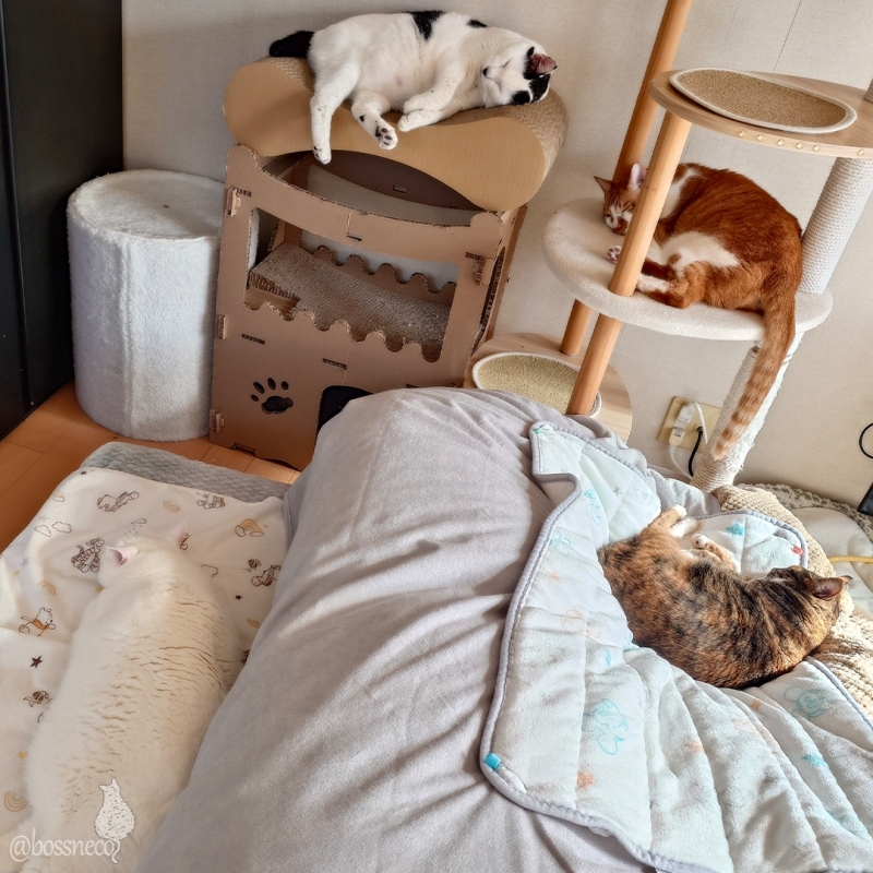 仕事納めで忙しいけど そんなこと関係ない子達はまったりしてました 明日からは一緒にまったりします☝ #Blueskyねこ部 #CatsofBlueSky #CatsofBSky #catsky #catlovers — from Bluesky 2025-12-26