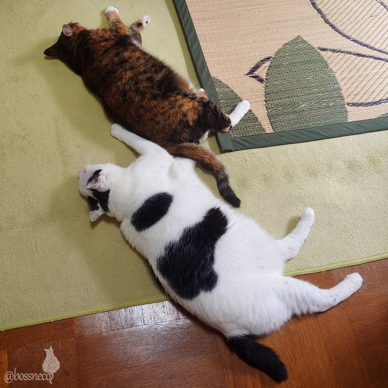 何かを待っている子たちと シンクロで落ちている子たち ごはんは食べたよね? #Blueskyねこ部 #CatsofBlueSky #CatsofBSky #catsky #catlovers — from Bluesky 2025-08-31