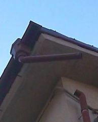 家の屋根の『雨どい』がはずれて 雨が筒からダイレクトに道路に流れ落ちてた
