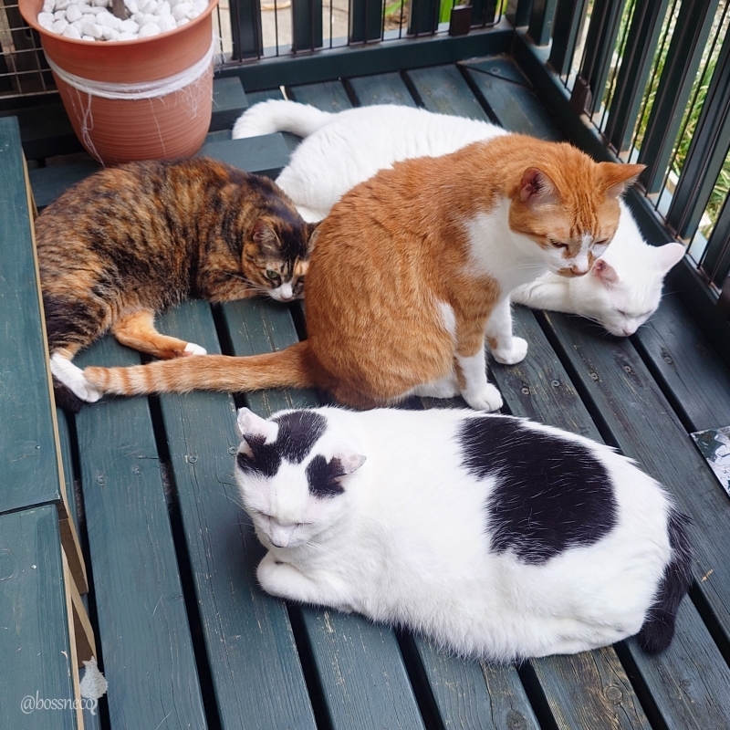 少し明るくなったので ベランダに出る?って聞いたら全員集合 でもまた雨降ってくる予報 #ねこ部 #猫部 @catclub.bsky.social #楽しい我が家 #こんな毎日が大切 #毎日が猫祭 #猫好きさんと繋がりたい — from Bluesky 2024-07-15