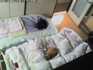 出がけに lan を布団においてきたら、そのままの場所で眠ってます~