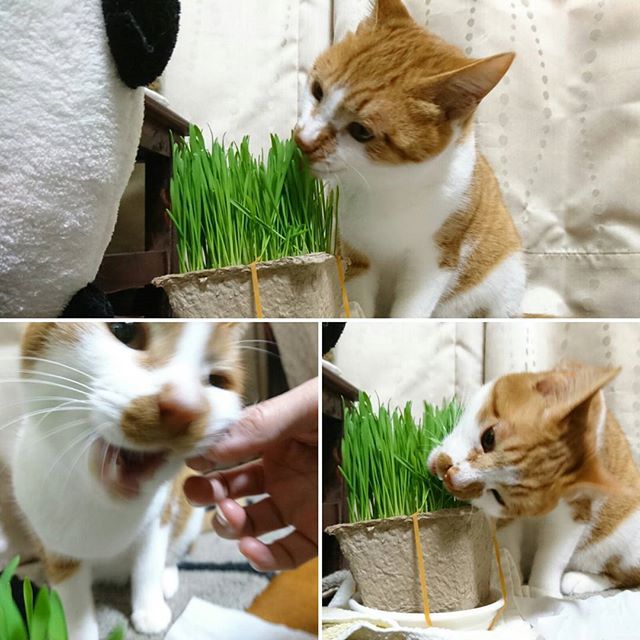 昨日オリヅルランを食べてたので猫草を買ってきてあげました🎵
