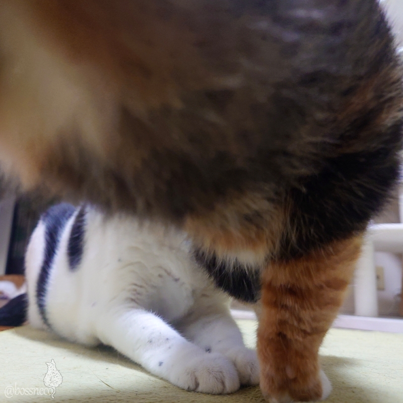白黒cocoにかわいいね~って言いながら写真を撮っていたら お嬢様が割り込んできて 大好きな兄ちゃんに舐めてもらってました おやすみなさい💤 #Blueskyねこ部 #CatsofBlueSky #CatsofBSky #catsky #catlovers — from Bluesky 2025-09-03