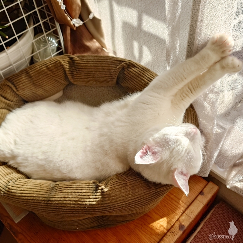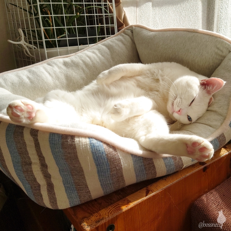 1年前の今日(四角いベッド)と現在(丸いベッド)