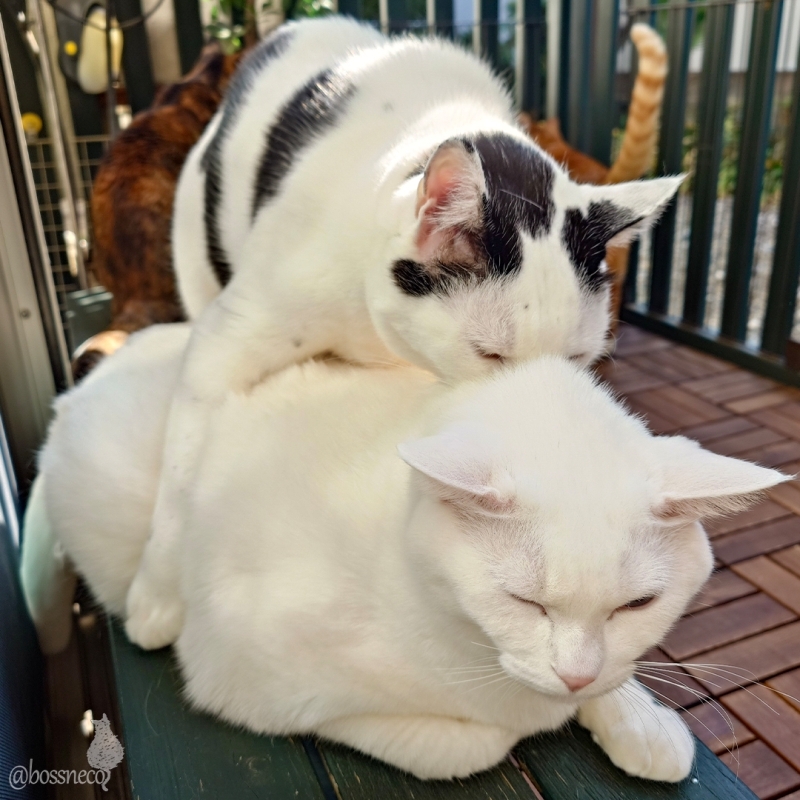 寝室のお布団を整えていたら 防水シーツにお粗相の跡が💦 ダメでしょ!って言いにきたら すでに兄ちゃんに叱られていた白猫Ryu #猫の日 #ねこの日 #にゃんにゃんにゃんの日 #Blueskyねこ部 #CatsofBlueSky #CatsofBSky #catsky #catlovers — from Bluesky 2026-02-22