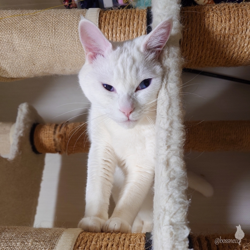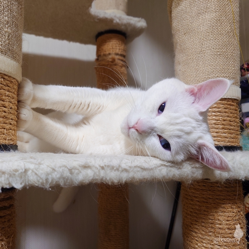 お手手を揃えて寝ているので 写真を回転させてみた 座っているように見えなくもない? #猫部 @catclub.bsky.social #楽しい我が家 #こんな毎日が大切 #白猫 #雪降ってきた — from Bluesky 2024-03-05