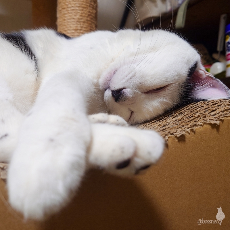 薄目を開けて寝ている白黒猫と くりっくりグリーンアイの縞三毛猫 まだ土曜日? 間に合ってる? #土アップ祭 #土あっぷ祭 #土アップ #Caturday #猫部土アップ祭り #猫部 @catclub.bsky.social — from Bluesky 2024-04-13