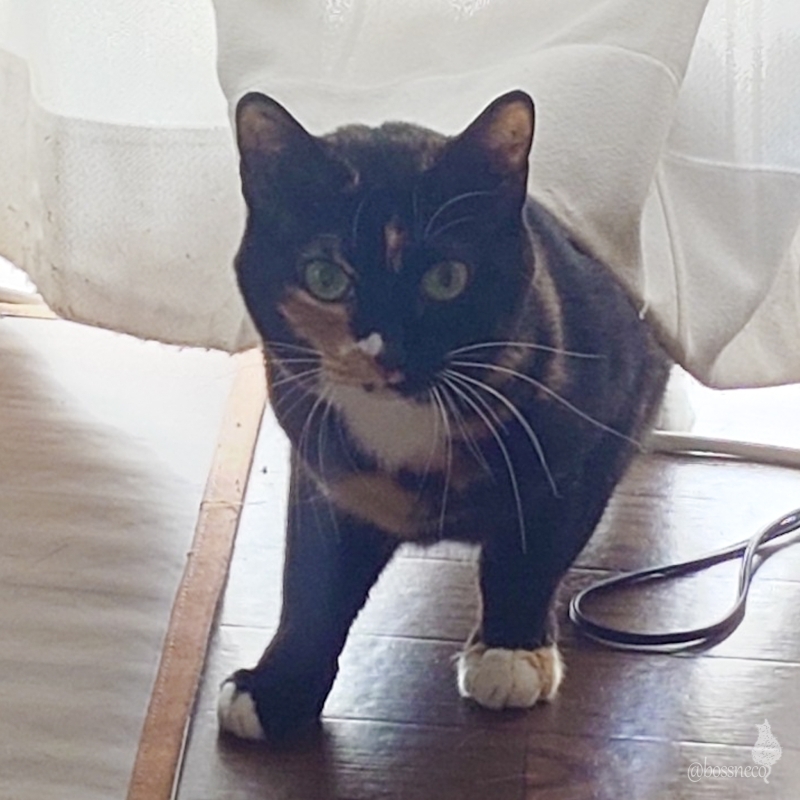 お嬢様Linのドアップ 茶白fumiと縞三毛Linの3にゃんズ兄妹 妹家の黒三毛すず 久しぶりに会いに行ったら固まっちゃいました #猫部土アップ祭り #土アップ祭 #土あっぷ祭 #土アップ #Caturday #猫部 @catclub.bsky.social — from Bluesky 2024-05-11