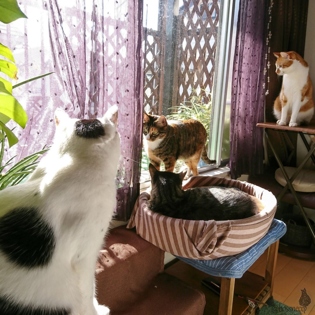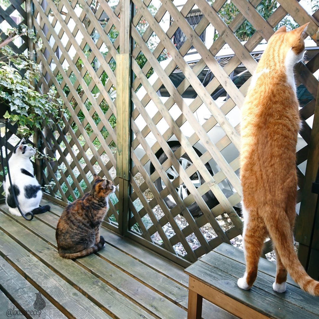 ベランダに出たい子らもついて降りてきます💨