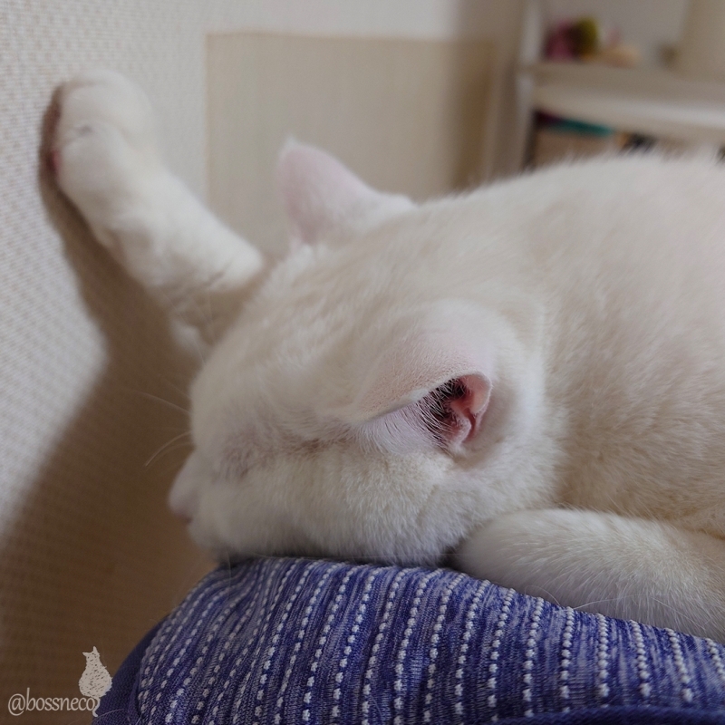 帰ってきたら 白猫Ryuが壁ドンして爆睡してました ただいま! #Blueskyねこ部 #CatsOfBlueSky #楽しい我が家 #こんな毎日が大切 — from Bluesky 2025-06-26
