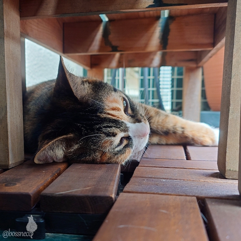 暑いけどウッドデッキが冷たくて気持ち良いみたい