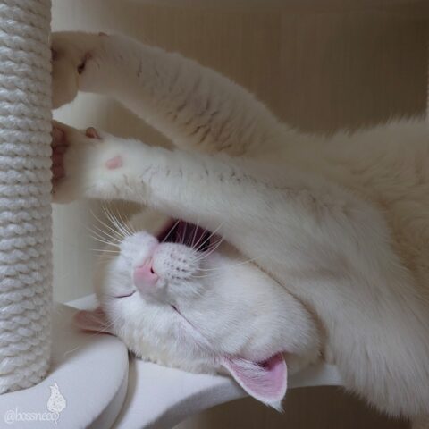 ひっくり返って寝ているけど大あくび! おやすみなさい💤 良い週末を✨ #Blueskyねこ部 #CatsofBlueSky #CatsofBSky #catsky #catlovers — from Bluesky 2026-01-30