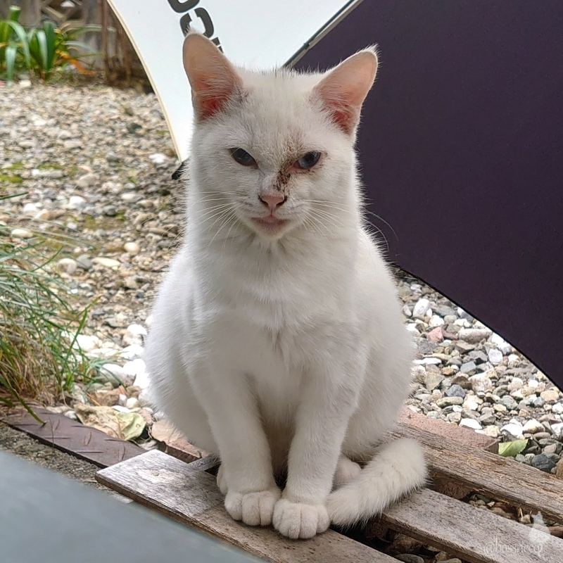 1枚目:スマホのアルバムが教えてくれた2022年1月の写真 2枚目:昨夜の写真 3枚目:2021年11月突然お庭に現れた白い仔猫 4枚目:2021年11月お迎えした当時 お顔もお耳の後ろもボロボロだったけど きれいに治って そしてこんなに大きくなりました♡ 猫部 @catclub.bsky.social — from Bluesky 2024-02-17
