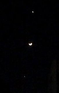 昨日18時くらいから21時くらいまでの3時間、金星・月・木星が一直線に並ぶ天体ショーを見ることができた。
