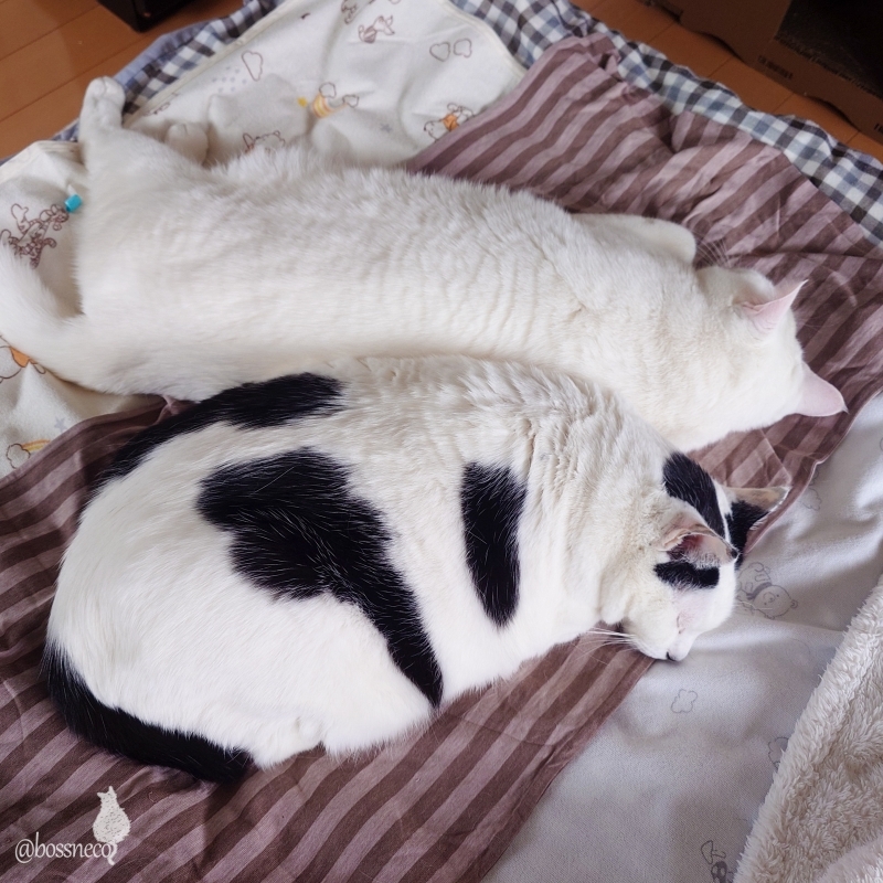 このふたりがくっついてると 存在感がすごいわ♡ 寒そうなのでこのあとブランケットを かけてあげました #Blueskyねこ部 #CatsOfBlueSky #楽しい我が家 #こんな毎日が大切 — from Bluesky 2025-04-13