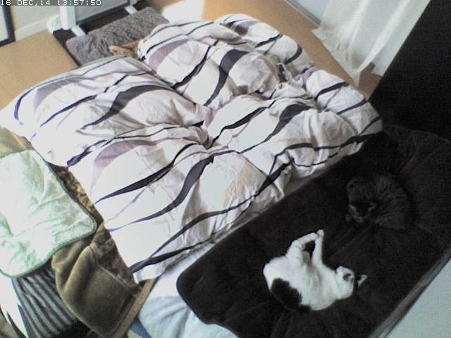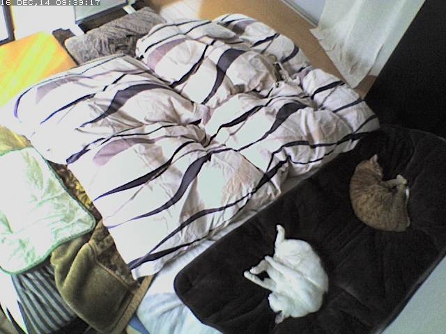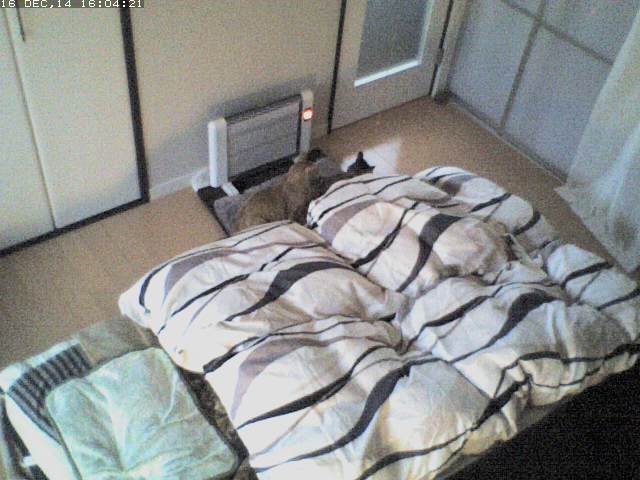 mark がヒーターの前にいると思うんだけど、布団が邪魔で見えないね。