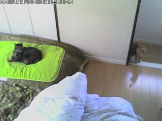 部屋の中は風がないから日向はあったかいだろうけど、陽が沈むと寒いだろうなぁ..