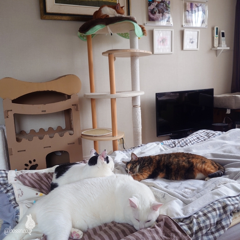 出かけるのがわかったのかな? 早々に寝る体勢に入った子たち お留守番よろしくね #Blueskyねこ部 #CatsOfBlueSky #楽しい我が家 #こんな毎日が大切 — from Bluesky 2025-04-20