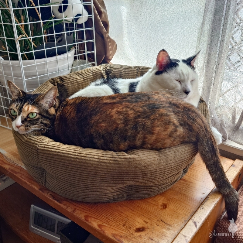 cocoとLinにちゅ~るをあげようとしたけどLinが逃げてなかなか食べてくれない..