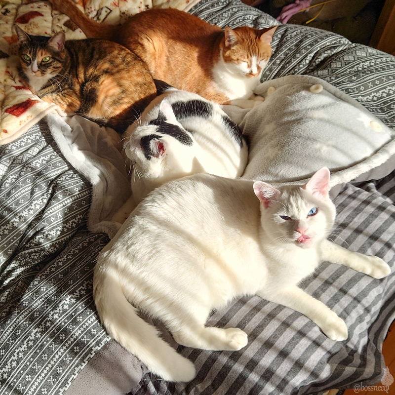 ね! fumiに対してはおかまいなし🐉 🎞p.2 この椅子大人気♡ 🎞p.3-6 cocoもみんなに大人気♡ 🎞p.7 これが精一杯の 今の我が家の猫団子🍡 新しい #我が家のフォーメーション #仲良し家族 #こんな毎日が大切 #ニャンズパワーで笑顔を拡散 #病気の猫ちゃんに元気玉 🔴 #cats #catstagram #catstagram_japan #ねこすたぐらむ #にゃんすたぐらむ #猫後頭部倶楽部 #猫熟女同盟 #あなたへ届け💕猫熟女愛の光✨ #熟井戸は小さな幸せで溢れてる #猫親バカ同盟 #毎日が猫祭 #猫に優しくしてくだ祭 #白黒猫 #ヅラ猫 #茶白猫 #縞三毛 #白猫 — from Instagram 2022-12-28