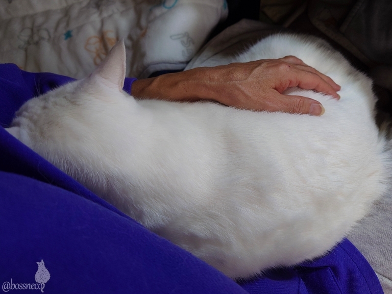 手持ち無沙汰なので 抱っこされちゃった白猫Ryu この時間はいつもだったらTVで野球を観ていた時間⌚ #Blueskyねこ部 #CatsofBlueSky #CatsofBSky #catsky #catlovers — from Bluesky 2025-10-31