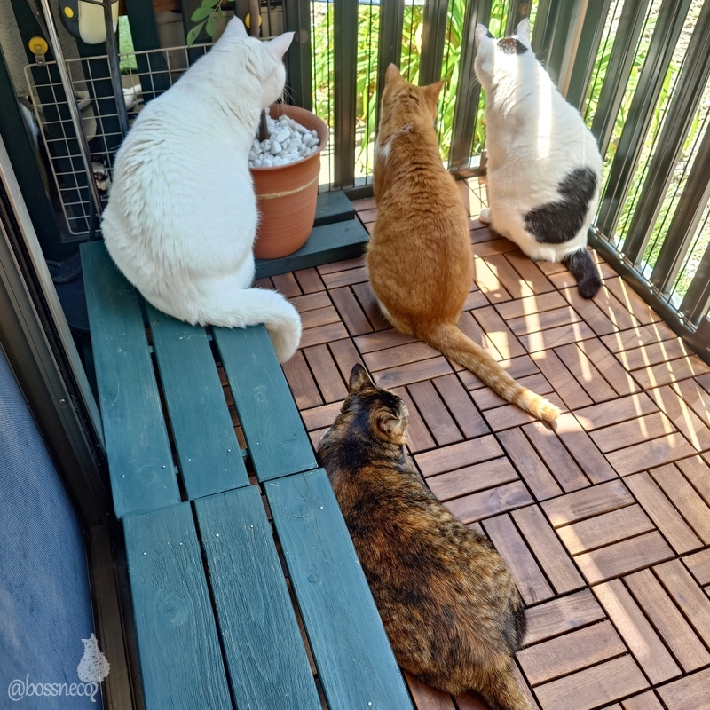 部屋にいたのに カラスさんが来た音で飛び出した皆さん ついでに日光浴☀ 暑くなったら入ってきてね #Blueskyねこ部 #CatsOfBlueSky #楽しい我が家 #こんな毎日が大切 大谷くん怪我せずに楽しめますように⚾️ 昨夜録画セットしていたのに BS放送から地上波に変わってたのね 気がついてよかったわ! — from Bluesky 2025-06-17