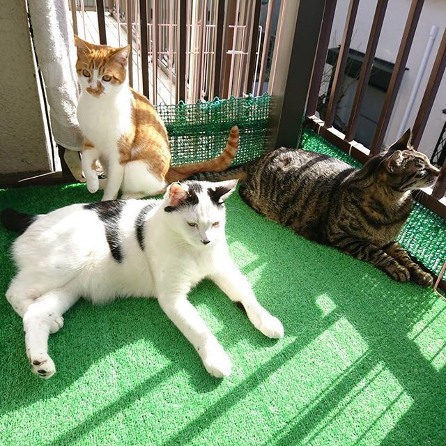おはようございます🎵 日向でぽかぽか☀ 横顔が素敵なmark アンヨがクロスしているcoco アンヨを中途半端に上げてるfumi のんびりとしたお正月🎍 #cats #catstagram #ねこ #ねこすたぐらむ #にゃんすたぐらむ #猫 #ねこ部 #もちぽよ部 #ペコねこ部 #みんねこ #黒さば #きじとら #とら猫 #白黒猫 #ちゃしろ #茶白猫 — from Instagram 2017-01-02