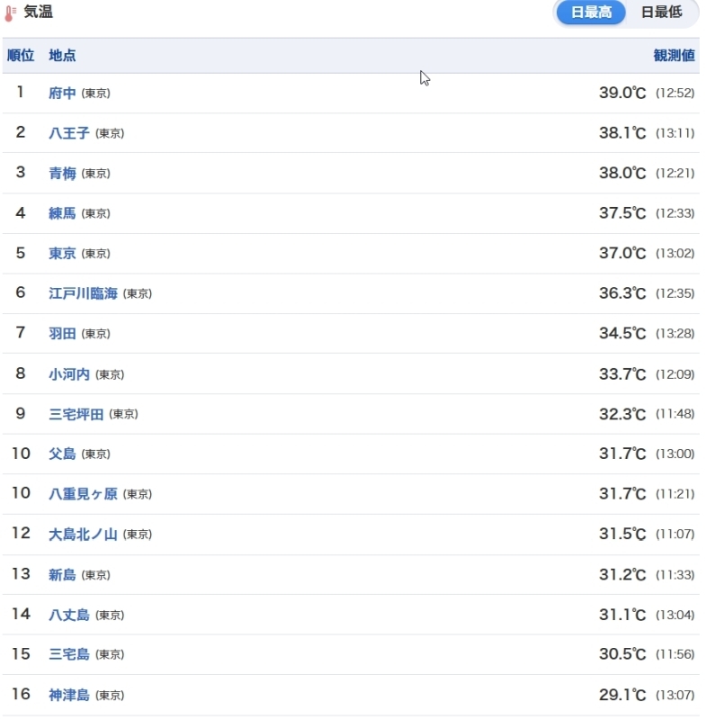 向こう1週間~2週間の天気予報 まだまだ35℃超えの日が続く.. 今日は隣町で日本一の最高気温🌡 そこのアメダス観測地点をGoogle mapで検索 農工大のところにあるんだ! 知らなかった 2025-08-18