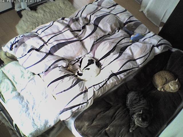 先週に引き続き明日も雪だって。 今回はもう少し長い時間雪が降って、この前よりも積もるみたいだよ。 寒い1日になりそうだね。 今日は陽が当たってあったかそうだね。 coco、見られてますよ。 2015-02-04