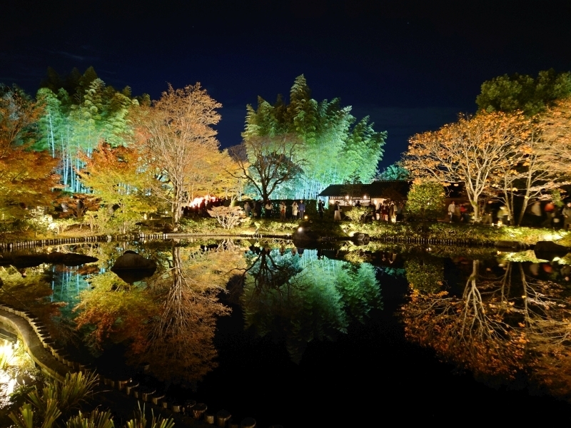 昭和記念公園 “秋の夜散歩2023” 水面に夜の景色が反射する「日本庭園」 紅葉にはまだ少し早かったけど.. 幻想的な景色がとても素敵でした✨ 紅葉も良いけど竹林もね♡ — from Bluesky 2023-11-19