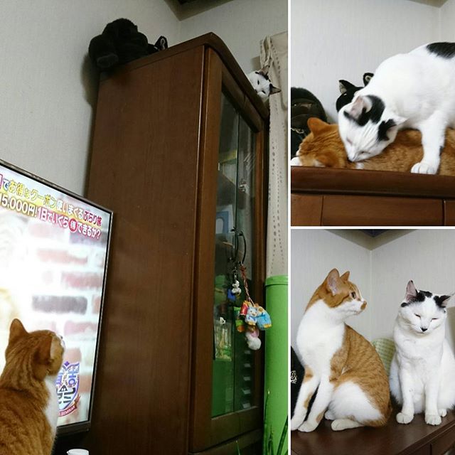 そこに行きたい〜〜🐵 来れるわけないにゃん🐼 こんなやり取りをしていたはずですが、今夜初めてfumiが我が家の最高峰への登頂に成功🏔 この瞬間は目撃できませんでしたが、上でcocoに叱られてました😂 ここはぼくの憩いの場所にゃん💦🐼 へっへ〜〜ん🎵🐵 #cats #catstagram #ねこ #ねこすたぐらむ #にゃんすたぐらむ #猫 #ねこ部 #もちぽよ部 #ペコねこ部 #みんねこ #とら猫 #白黒猫 #ちゃしろ #茶白猫 — from Instagram 2017-01-16