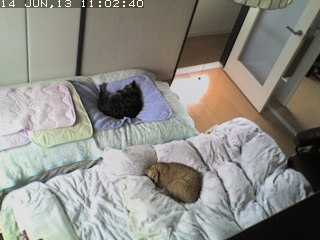今日も lan は出がけに置いた場所で寝てる。