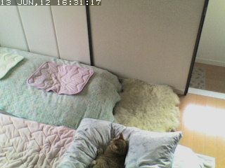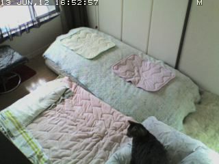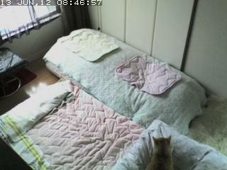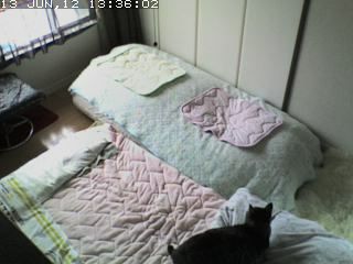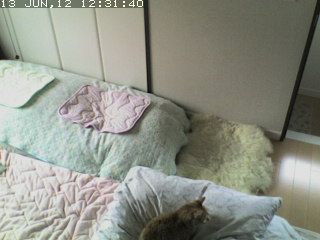 今朝、ちょっと寒かったから lanちゃんを羽毛布団の上においてみた。