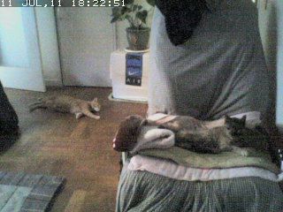 みんなそれぞれ涼しいと思われるところでバッタりしてるけど、天然毛皮だし暑いだろうなぁ..