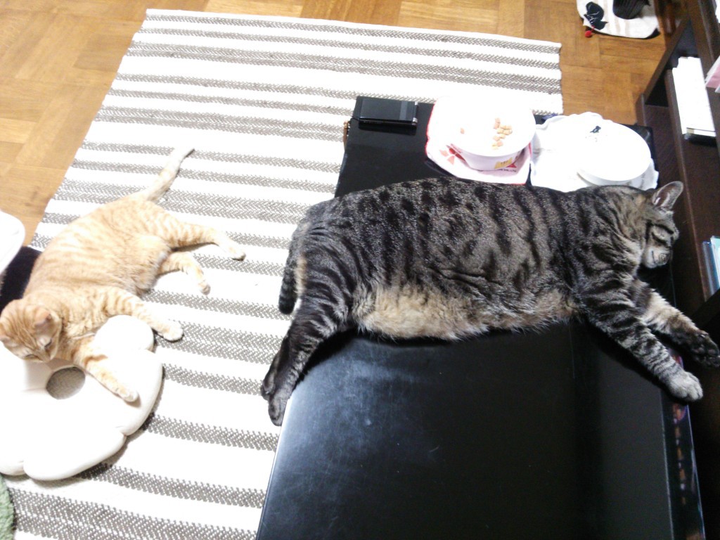 びっくり! なんと半月も早くに昨日6日に梅雨が明けた! そして今日の気温は35℃超え.. 向こう一週間、このくらいの気温が続くそうで、今のところお天気も晴天。 35度っていったら、私の平熱とほぼ同じ温度。 自分の体温よりも気温が上がったらどうなっちゃうのかな? とりあえずは、熱中症に気をつけることと、もうひとつ大切なことは『節水』。 これは大事。 あの子たちの熱中症も気をつけてあげなくちゃ。 << lan & mark now zzz… 暑くてぐったりの図 都心ではゲリラ豪雨があったらしいけど、こっちは入道雲と青空。 夏だ~! 2013-07-07