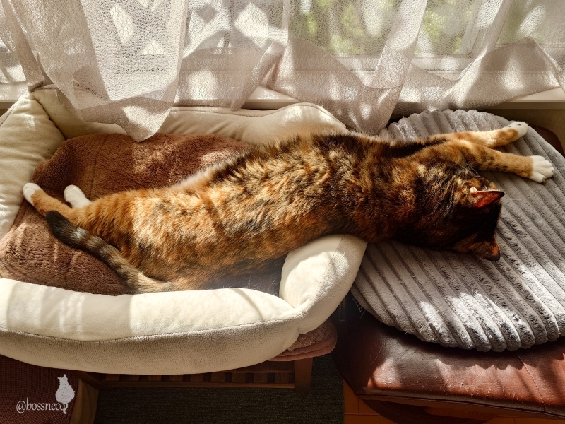 さて!仕事しましょ~ 部屋に入ってそんな気持ちを削がれたひとコマ 伸び切っているお嬢様Lin #Blueskyねこ部 #CatsOfBlueSky #楽しい我が家 #こんな毎日が大切 — from Bluesky 2025-01-14