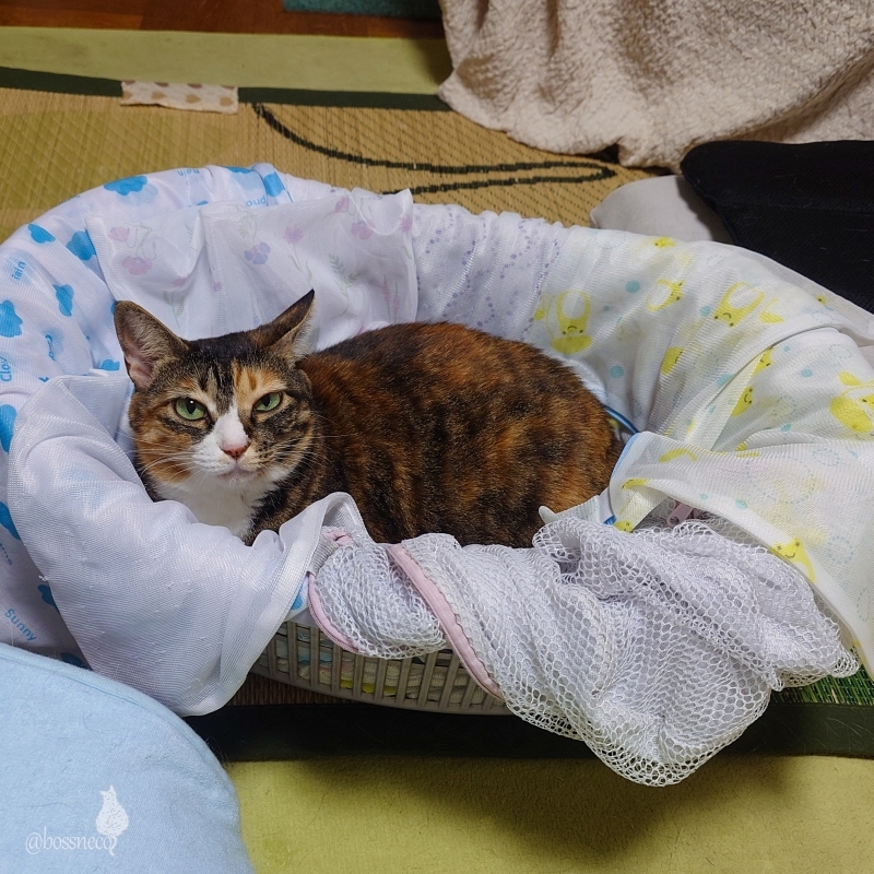 その洗濯ネット まだちょっと湿っているけど大丈夫? #ねこ部 #猫部 @catclub.bsky.social #楽しい我が家 #こんな毎日が大切 #毎日が猫祭 #猫好きさんと繋がりたい — from Bluesky 2024-07-14