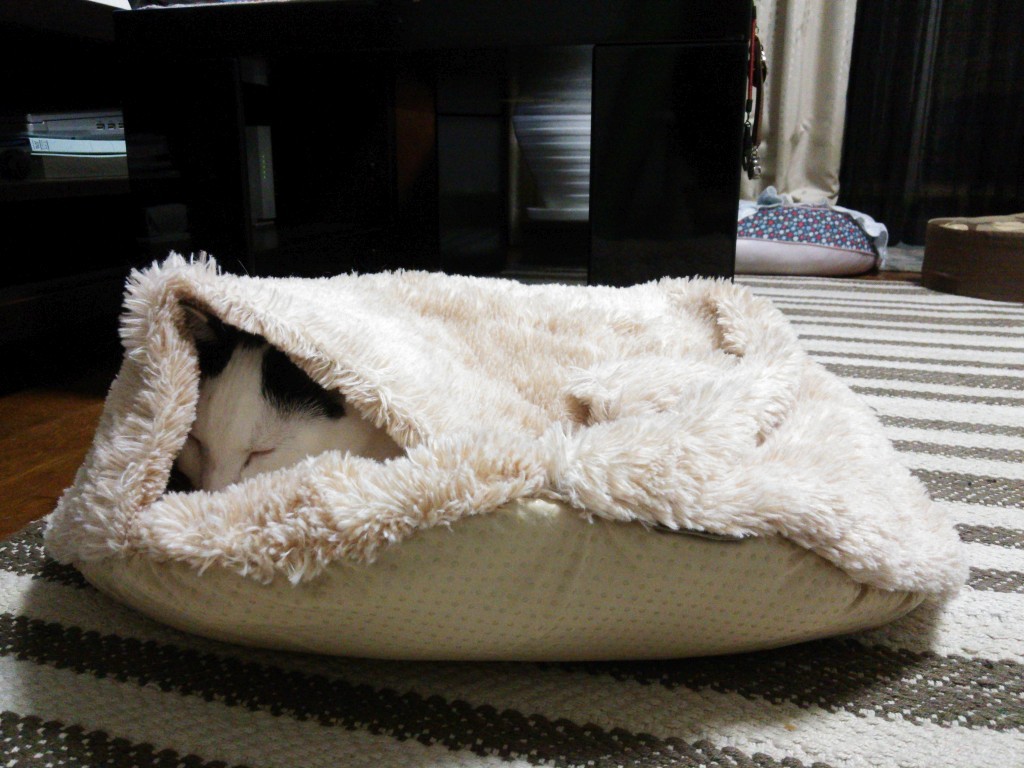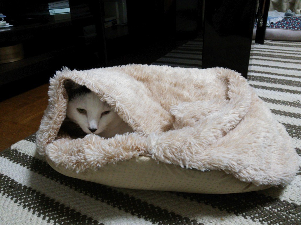 ねこ袋を出してあげたら、さっそく入って様子見てます。