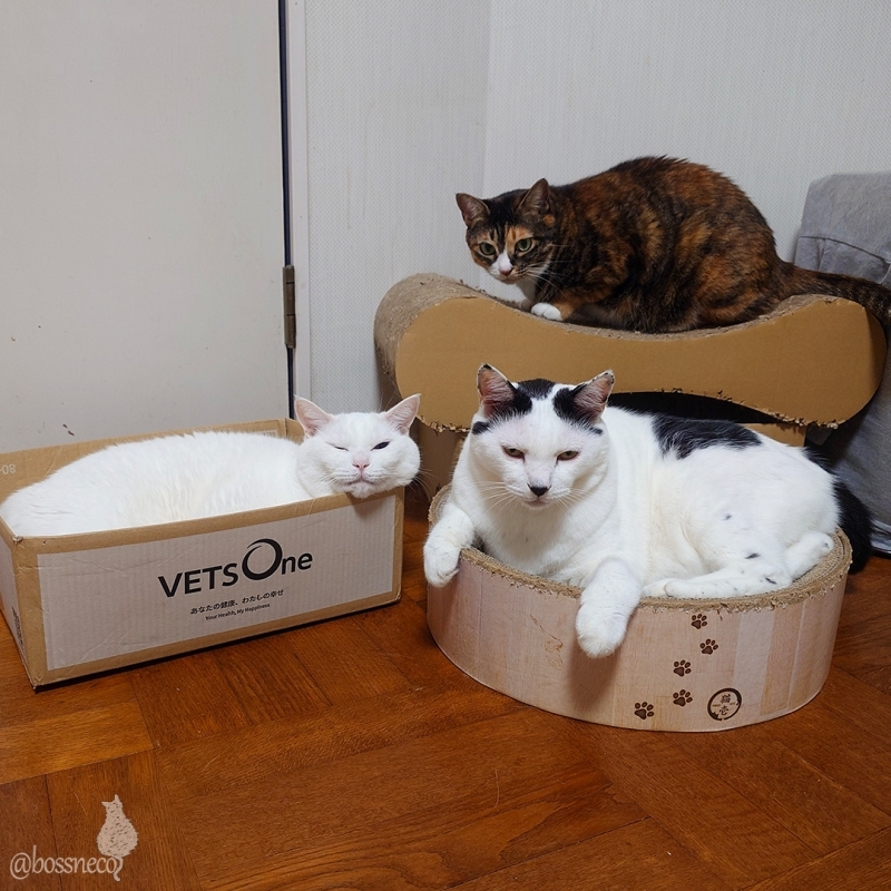 久しぶりにワンフレームに! って写真撮ってたら ぼくもいるよ~って滑り込んできた茶白fumi 良い週末を✨ おやすみなさい💤 #Blueskyねこ部 #CatsofBlueSky #CatsofBSky #catsky #catlovers — from Bluesky 2025-08-22