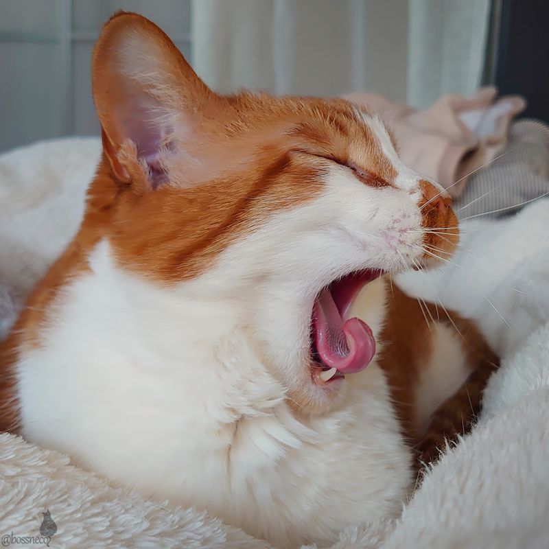 あくびするときに舌を巻く子と伸ばす子がいるのね💕