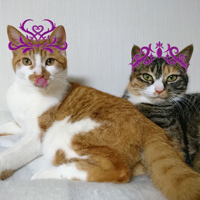 我が家の新しいfumi王子とLin姫でお祭り👑に行ってらっしゃい❣ #猫王祭 せっかくのツーショットなのにぺろっち👅を出してしまうひょうきんな王子です😅 #cats #catstagram #ねこ #ねこすたぐらむ #にゃんすたぐらむ #猫 #ねこ部 #もちぽよ部 #ペコねこ部 #みんねこ #とら猫 #ちゃしろ #茶白猫 #縞三毛 #しまみけ — from Instagram 2017-01-30