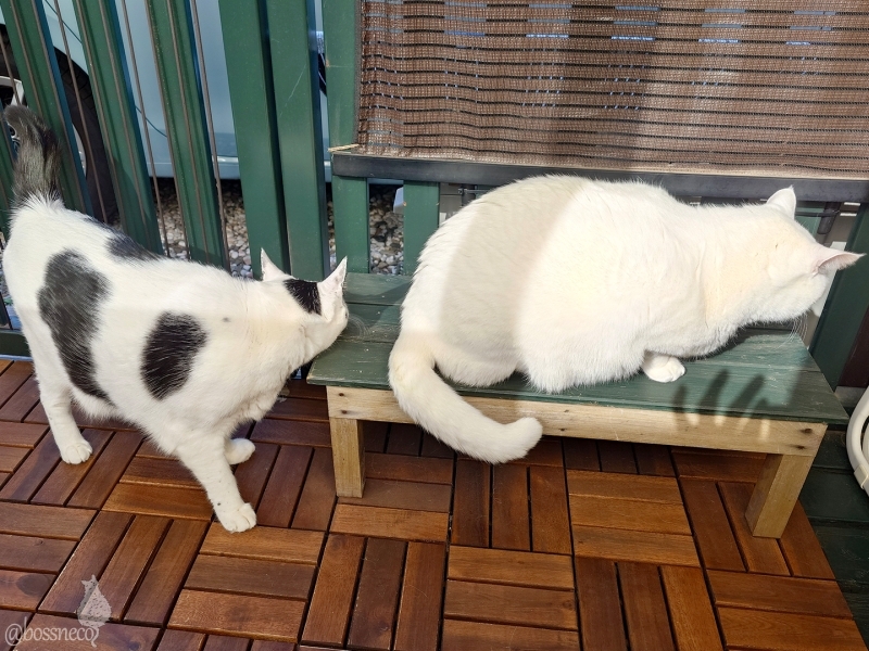 白系と茶系で別れてあっちとこっちをニャルソック 今日は工事もわりと静かでベランダに出られました! #Blueskyねこ部 #CatsofBlueSky #CatsofBSky #catsky #catlovers — from Bluesky 2026-02-03