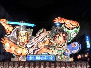 「ねぶた」の説明にあるとおり、人型の山車燈籠と、扇型の山車燈籠が、合計で8基くらいかな。