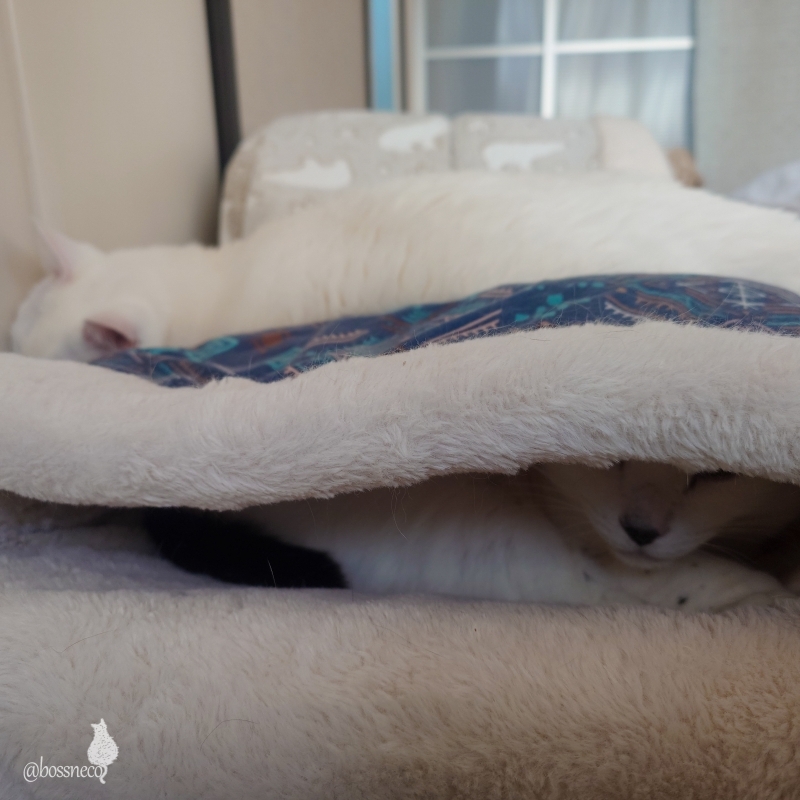 なんでそんな端っこで? と思ったら 兄ちゃんが下敷きになってました 重いよね💦 #Blueskyねこ部 #CatsOfBlueSky #楽しい我が家 #こんな毎日が大切 — from Bluesky 2025-02-19