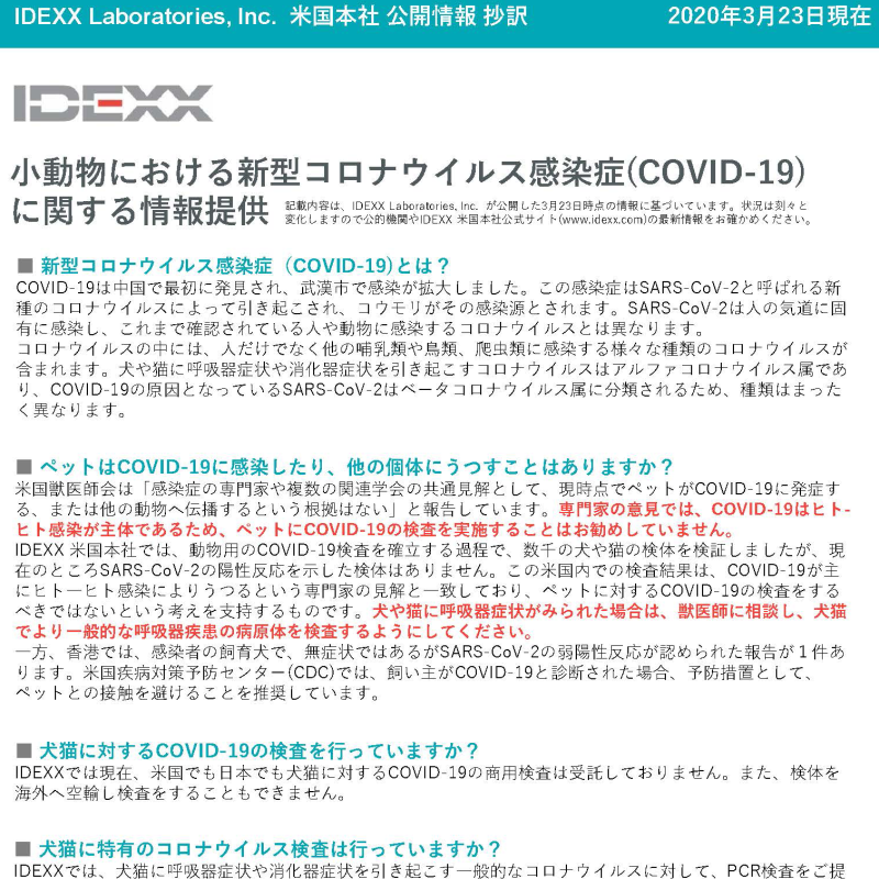 飼い主がCOVID-19に感染した場合に、同居ペットに呼吸器症状や消化器症状が示されてとしても、犬猫固有の一般的な呼吸器感染症を疑って検査をおこなうことが重要